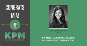 #KPMCPAs is pleased to announce that staff accountant Mia Kauffman has recently completed all parts of her certified public accountant (CPA) exam and earned her CPA license! Way to go,