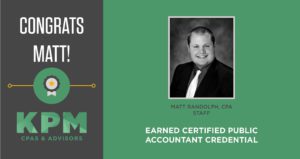 #KPMCPAs is pleased to announce that staff accountant Matt Randolph has recently completed all parts of his certified public accountant (CPA) exam and earned his CPA license! Way to go,