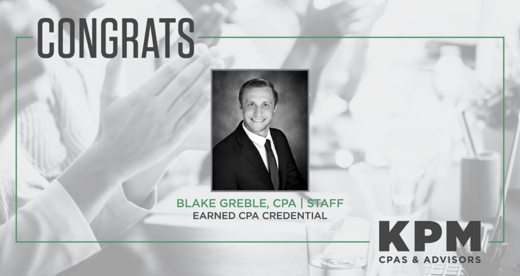 “We’re excited Blake earned his CPA license,” said Greg Ramsey, KPM shareholder and tax department leader. “This is a huge accomplishment, and as we continue to help individuals and organizations across our community with their tax needs, Blake will continue to be a valuable team member,” he added.