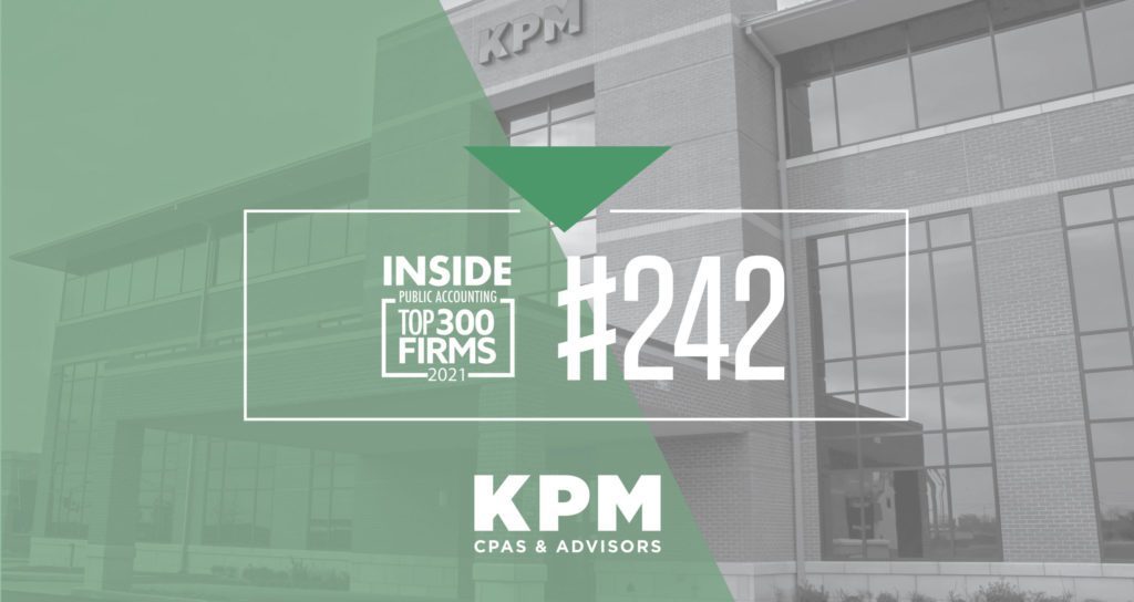 #KPMCPAs has again been named an INSIDE Public Accounting Top 300 Firm in the U.S! Ranked by net revenue, this is a distinction only one other #SWMO firm holds, and we are proud to be among the top-ranking firms. Thank you to our clients and wonderful #TeamKPM staff! This is the firm’s seventh consecutive year to receive this distinction. #KPMNews