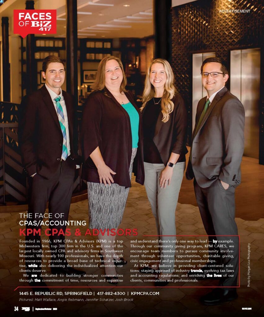 Hip Hip Hooray – We’re ‘The Face of CPAs/Accounting’ again for 2023 in Biz 417! You can find #KPMCPAs in the September issue featuring four #KPMLeadership team members: #KPMAudit Shareholders Matt Wallace, Angie Rebmann, and Jennifer Schazter, and #KPMTax Shareholder Josh Brock.