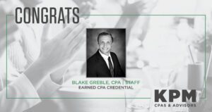 Springfield, MO – KPM CPAs & Advisors (KPM) proudly announces that Blake Greble, a staff accountant at the firm, has successfully earned his Certified Public Accountant (CPA) license after completing
