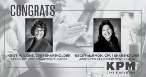 Springfield, MO – KPM CPAs & Advisors (KPM) is pleased to announce the appointments of Kristi Wilkins, CPA, as leader of the firm’s accounting outsourcing consulting (AOC) department, and Becky