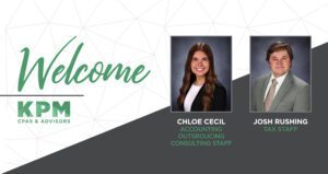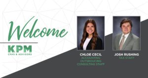 Springfield, MO – KPM CPAs & Advisors is pleased to welcome Joshua Rushing and Chloe Cecil to our tax and accounting outsourcing consulting departments, respectively. Chloe provides accounting outsourcing services